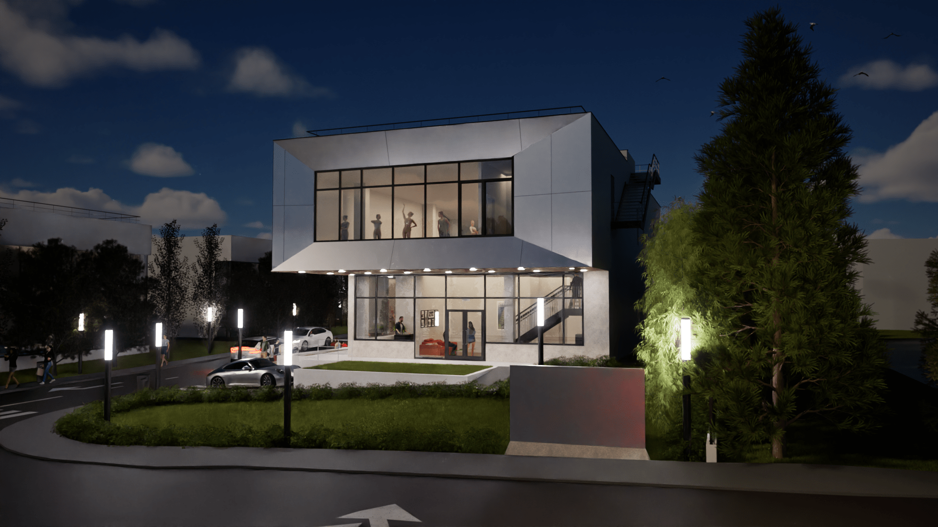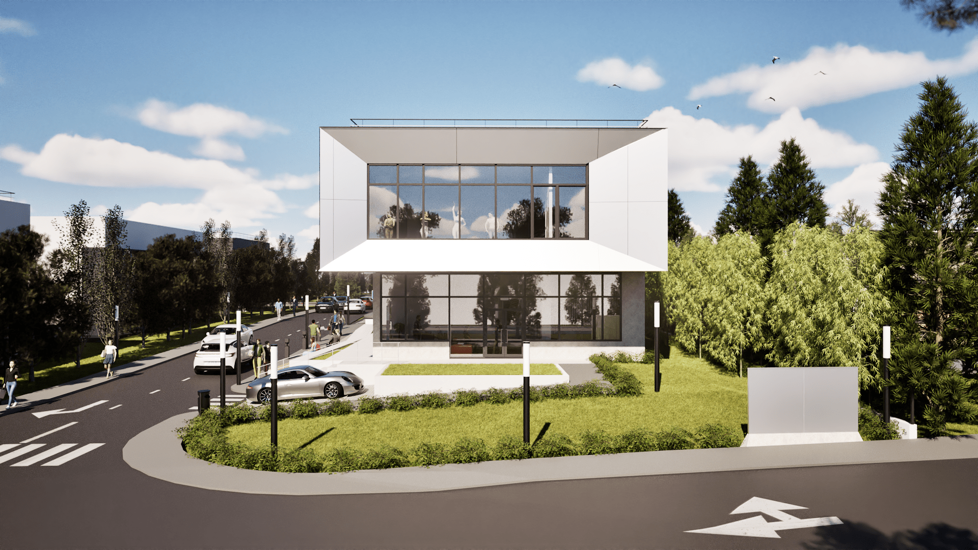 🪟 დიდი ვიტრაჟები უზრუნველყოფს უწყვეტ ბუნებრივ განათებას და ქმნის მჭიდრო ვიზუალურ კავშირს გარემოსთან, ხოლო გააზრებული სივრცითი სტრუქტურა პროექტს მაქსიმალურ ფუნქციურობასა და მოქნილობას ანიჭებს.